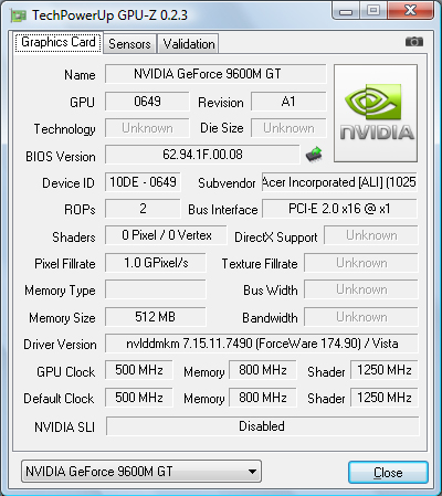 Nachdem Details wie Verarbeitung, Optik, Ausstattung usw. behandelt worden sind, wagen wir nun einen Blick unter die Motorhaube. Was nun zählt ist Leistung pur, und davon hat das Aspire 5930G, welches zur Familie der Montevina bzw. der Centrino 2 Notebooks gehört, einiges zu bieten. Für die benötigte und erwünschte Rechenleistung unseres Testkandidaten ist ein Intel Core 2 Duo P8600 mit 2,4 Ghz aus der aktuellen Penryn Generation verantwortlich. Dem zur Seite stehen insgesamt 4 GB RAM (2 x 2 GB PC-5300 Speicherriegel von Samsung) und eine GeForce 9600M GT Grafikkarte von nVIDIA mit 512 MB dedizierten GDDR3 Speicher.