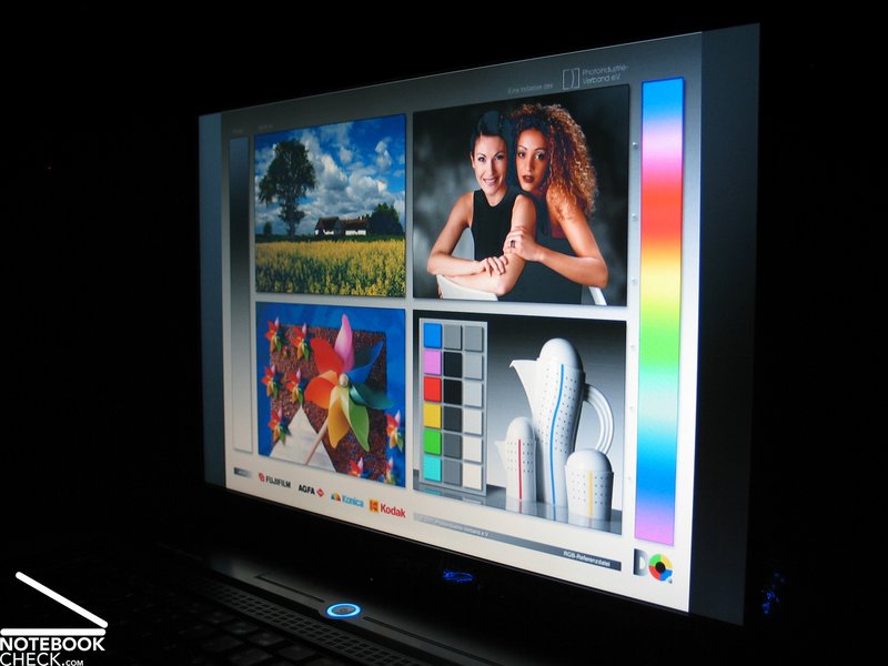 Das verbaute Display erlaubt in der vertikalen Ebene leider keinen allzu großen Spielraum was den Blickwinkel betrifft. Bei nur kleinen Veränderungen in der Sitzposition (Sitzhöhe) sind sehr schnell Verdunkelungen des Bildes auszumachen. Ein regelmäßiges nachjustieren des Displays ist somit erforderlich, vor allem beim Einsatz auf den Oberschenkeln. Der mögliche horizontale Blickwinkel hingegen ist ausreichend und zufrieden stellend.