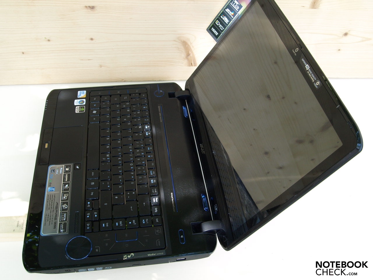 Insgesamt gibt sich das Acer Aspire 5935G-9A4G50Bn als solides Multimedia Notebook, welches aus seinem vorgesehenen Einsatzgebiet kein Hehl macht. Schon nach außen präsentiert es sich mit separater Multimediakonsole und spiegelndem Bildschirm im 16:9 Kinoformat als waschechtes für den Heimbedarf entworfenes Gerät mit Multimedia Schwerpunkt.