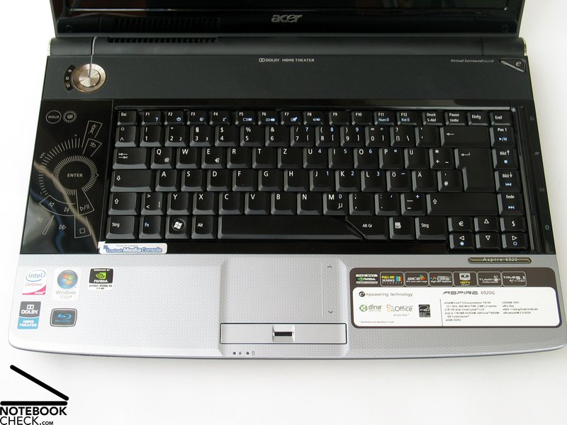 War die Tastatur beim alten Gemstone Design noch Ziel von zahlreichen gestalterischen Interventionen, so könnte man sagen ist das Aspire 6920G mittlerweile erwachsen geworden. Lediglich die Leertaste dient als kleiner Blickfang und zeigt an ihrer rechten Seite einen diagonalen Tastenübergang.