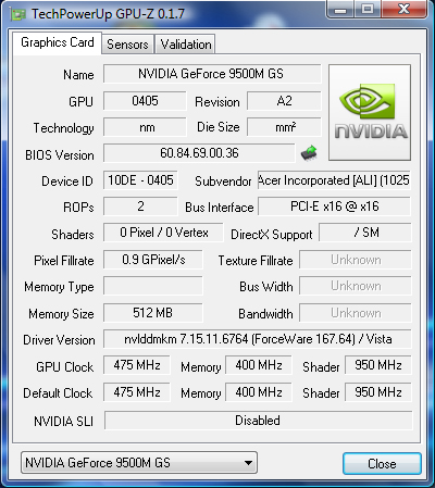 Auch beim Grafikchip bediente man sich topaktueller Technologie. Zum Einsatz im Acer Aspire 6920G kommt eine Geforce 9500M GS von nVIDIA, dem Nachfolger des 8600M Grafikchips, der über 512MB dedizierten Videospeicher verfügt. Diese Grafikkarte definiert das aktuelle Mid-Range Segment der kompakten Multimedianotebooks, verfügt jedoch um größere Leistungsreserven als ihr Vorgängerchip. In bisherigen Benchmarktests konnte sich die 9500M GS Grafikkarte in etwa auf dem Niveau des leistungsstarken 8600M GT Grafikchips einordnen.