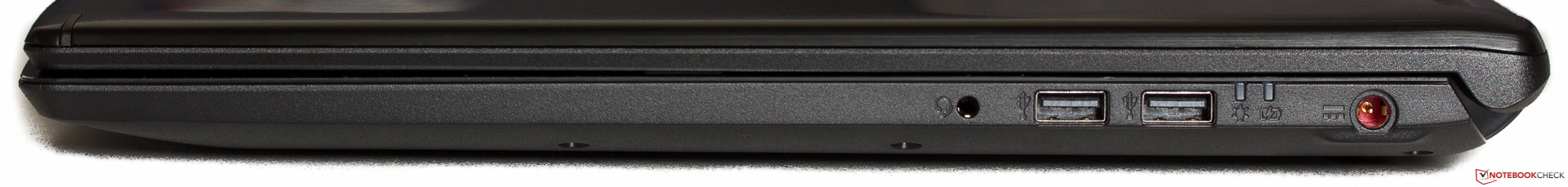 Wie eingangs erwähnt, sieht es bei den Anschlüssen etwas mager aus. Zwei der insgesamt vier USB-Ports arbeiten noch nach dem langsamen 2.0-Standard, aber immerhin ist einer der beiden USB-3.1-Gen1-Ports als Typ C ausgeführt. Für den stationären Betrieb gibt es Ethernet (ausklappbar) sowie HDMI. Herkömmliche Headsets lassen sich wegen des bei Gaming-Laptops eher unüblichen Kombo-Audio-Ports nicht anschließen. Die Positionierung geht in Ordnung, Acer hat augenscheinlich versucht, alles so weit wie möglich hinten unterzubringen, wo Sticks und Kabel weniger im Wege sind.