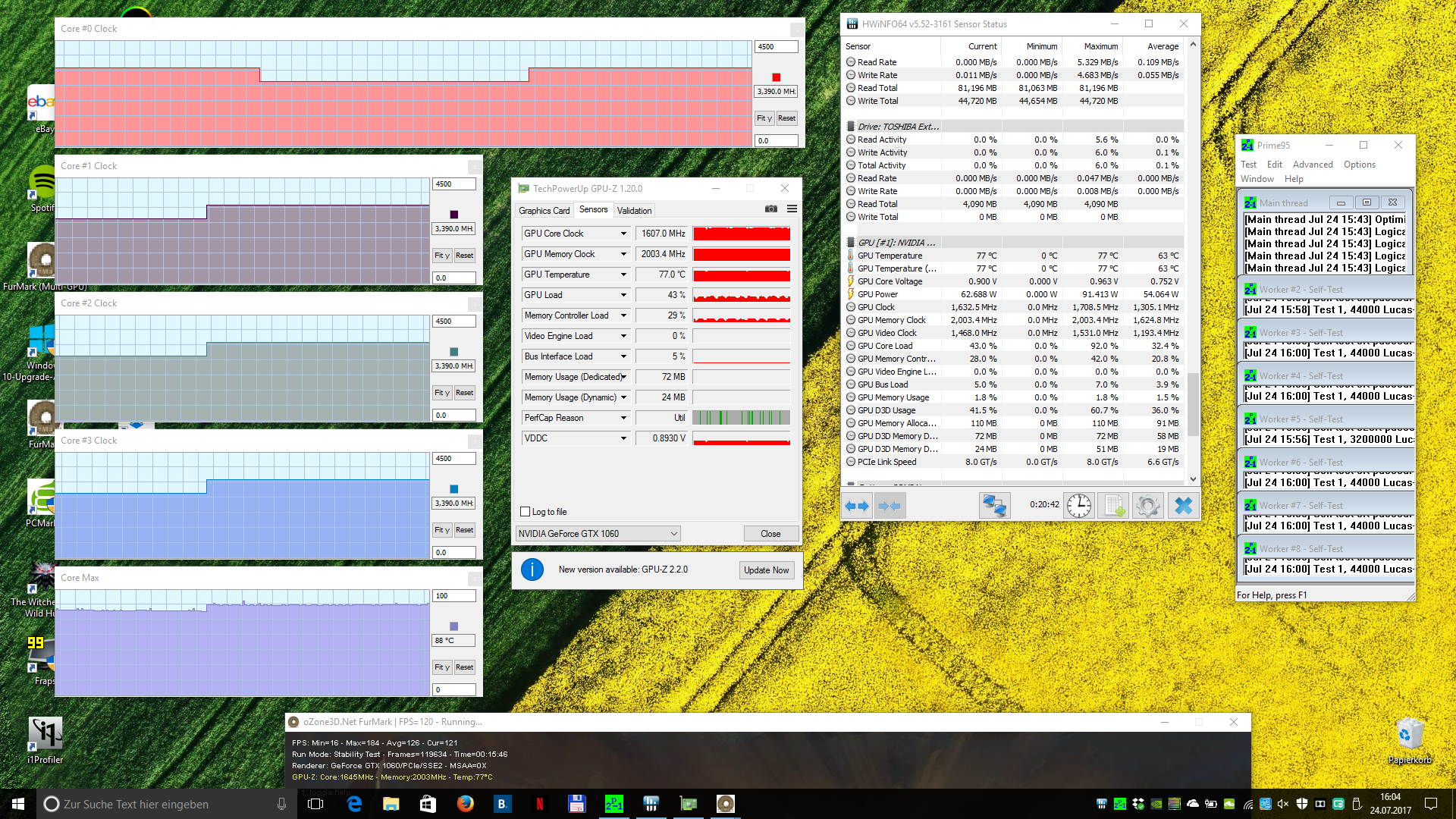 Im Stresstest konnte die CPU zunächst für einige Minuten einen Takt von 3,4 GHz halten und begann dann, in mehrminütigen Abständen zwischen 2,8 und 3,4 GHz hin und her zu springen. Als der Tester nach etwa einer Stunde nochmals nachgeschaut hat, verharrte der Takt konstant bei 2,8 GHz, sodass der Basistakt nie unterschritten wurde und somit kein Throttling vorliegt. Mehr als 88 °C erreichte der Prozessor dabei nicht. Die GPU war hingegen durchgehend in ihrem Turbo-Bereich unterwegs, was exakt zu den einwandfreien Benchmarkergebnissen passt.