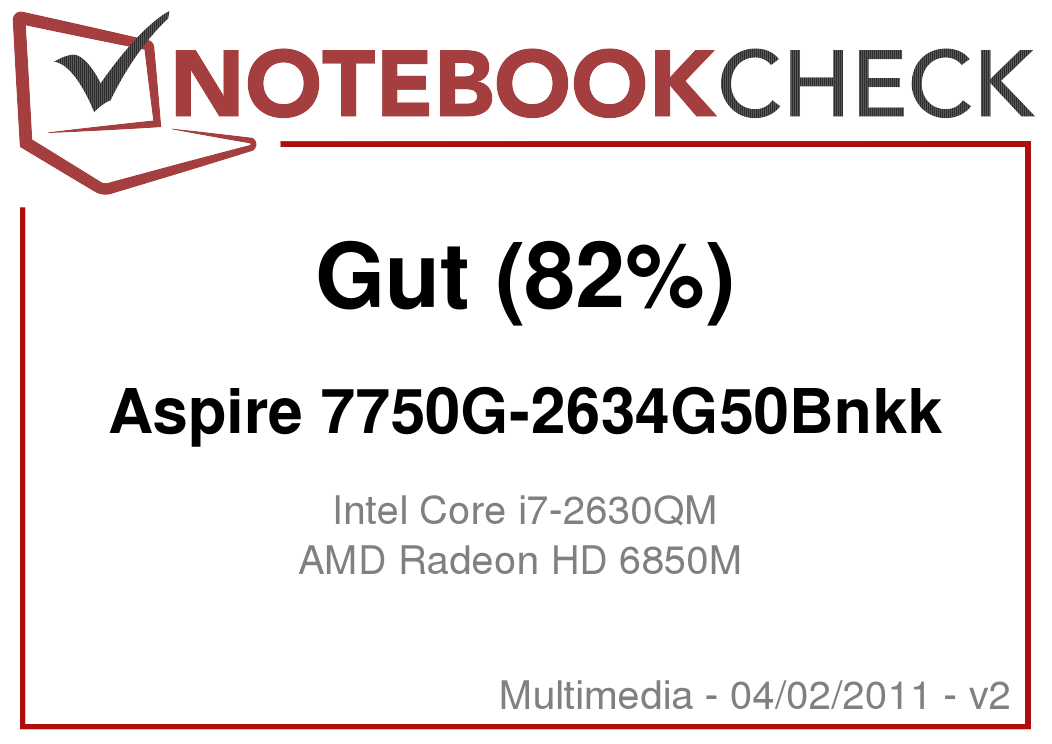Zum Preis von knapp unter 1.000 Euro erscheint das Aspire 7750G-2634G50Bnkk als faires Angebot. Wer wenig Anschlüsse braucht und gnädig über die gewöhnungsbedürftige Tastatur hinwegsieht, der bekommt ab April ein leistungsstarkes System, das fit für die Zukunft ist. Vorerst wird allerdings der Sandy Bridge Rückruf für einen Auslieferungstop des 7750G sorgen. Siehe dazu Intels defekte Sandy-Bridge-Chipsätze – Bestandsaufnahme.