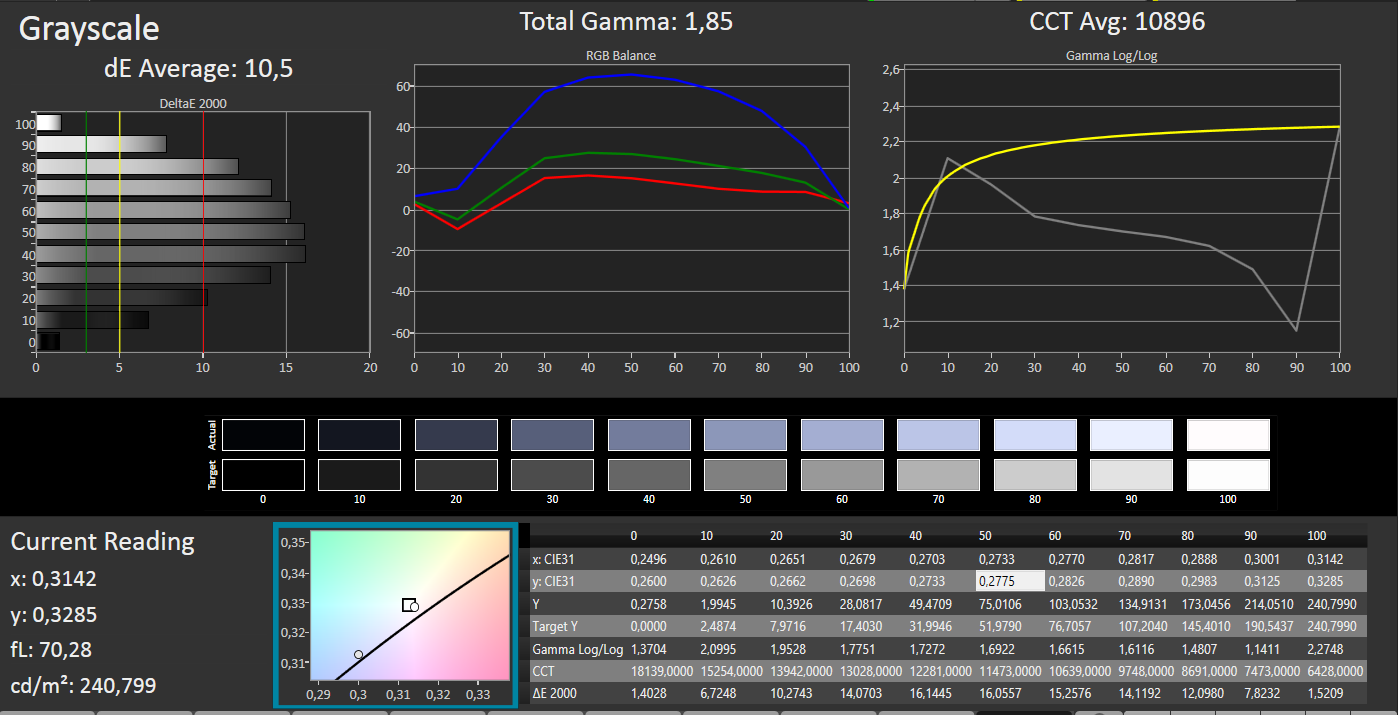 ΔE Greyscale Calman: 10.5 | ∀{0.09-98 Ø5}