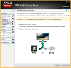 Ein Kuriosum ist die verbaute Grafikkarte. Üblich sind in Notebooks normalerweise zwei GPUs zwischen denen, je nachdem welche Leistung gefordert wird, hin und her geschaltet wird. Die Radeon R8 M365DX ist ein Verbund aus der CPU GPU (AMD Radeon R6) und der sekundären GPU (AMD Radeon R7 M360). Beide werden über AMDs CrossFire Modus zusammengeschaltet. Im Treiber kann das aber deaktiviert werden, womit nur die dedizierte Grafikkarte genutzt wird. Das Gespann ist allerdings auch anfällig für Mikroruckler. Ob die Performance dadurch gesteigert wird, ist von Spiel zu Spiel unterschiedlich. Es kann auch zu spürbaren Leistungseinbußen führen. Beide Grafikkarten zusammen bewegen sich etwa auf dem Niveau einer GeForce 920M und gehören damit zum unteren Mittelfeld.