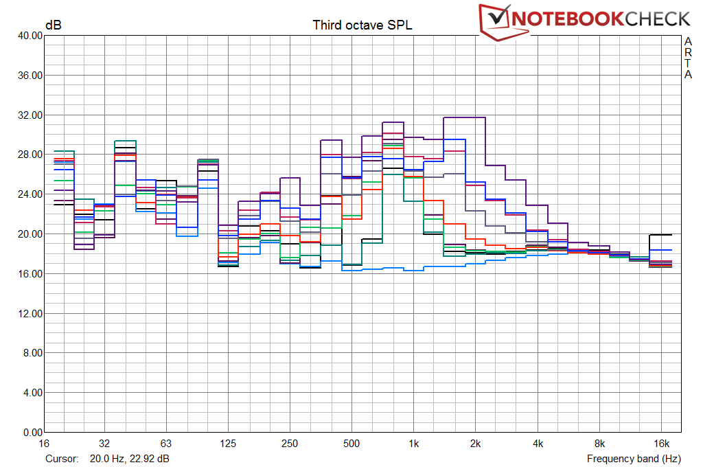 Wie bei den meisten Notebooks, können auch hier die beiden Stereolautsprecher nur bedingt überzeugen. Bässe und untere Mitten finden wir kaum und höhere Mitten fehlen gänzlich. Im Allgemeinen werden die Lautsprecher für den normalen Heimgebrauch ausreichen, jedoch sollten anspruchsvolle Musikhörer auf externe Geräte zurückgreifen. Die Lautstärke von 79 dB ist ebenfalls ausreichend.