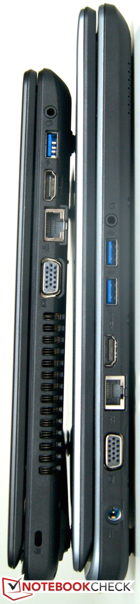 Erfreuliche Veränderungen sind, dass zumindest auf einer Seite die Positionierung der Schnittstellen weiter hinten angesiedelt wurde und die Hinzufügung eines weiteren USB 3.0-Ports. Sonstige Unterschiede sind nicht aufzufinden. Unvorteilhaft bleibt die einseitige Verteilung der USB 3.0-Steckplätze.