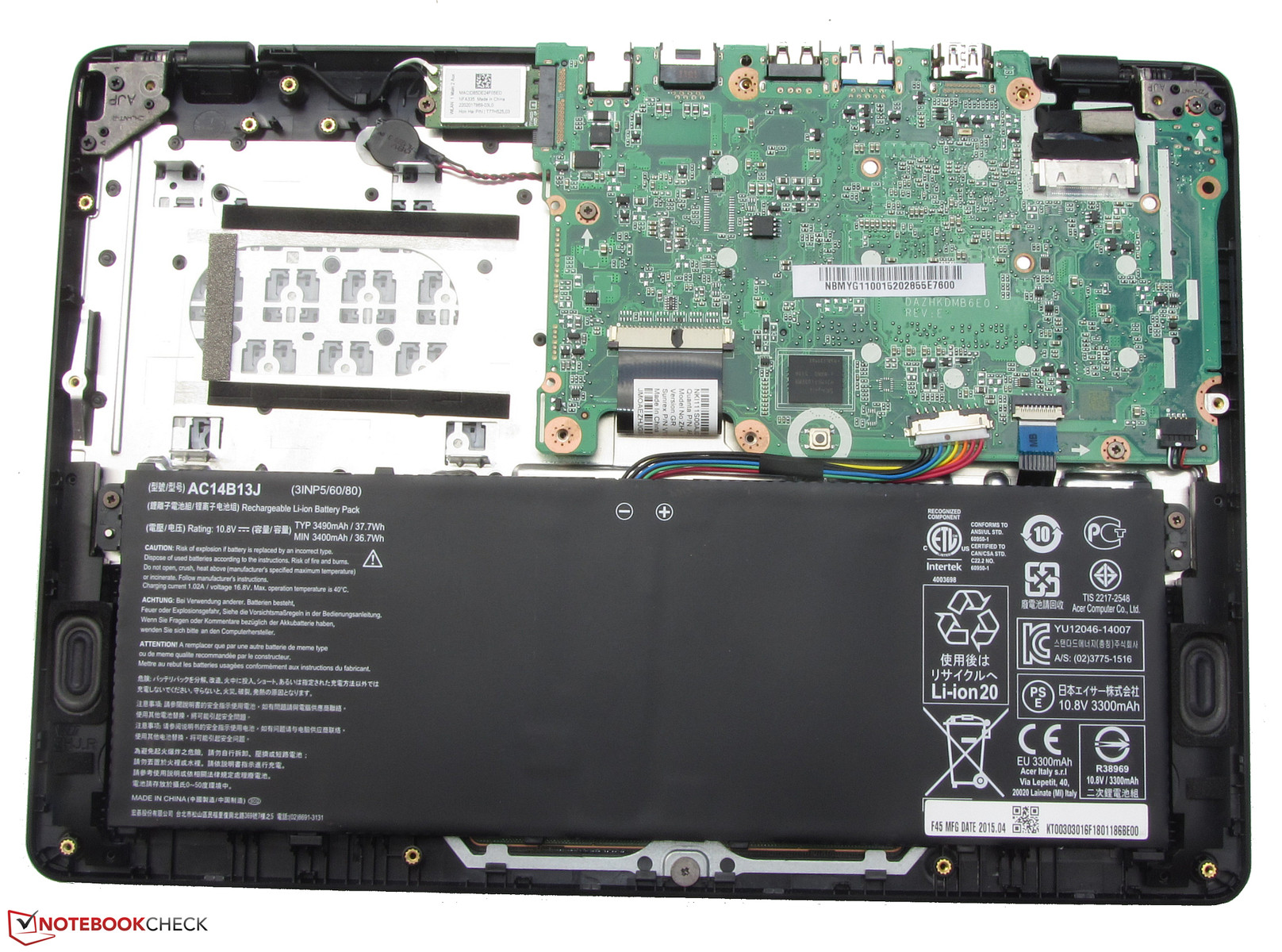 Da die beiden von uns getesteten Aspire Modelle baugleich sind, gehen wir nicht weiter auf das Gehäuse, die Ausstattung, die Eingabegeräte, das Display und die Lautsprecher ein. Entsprechende Informationen können dem Testbericht des Aspire ES1-111 entnommen werden.
