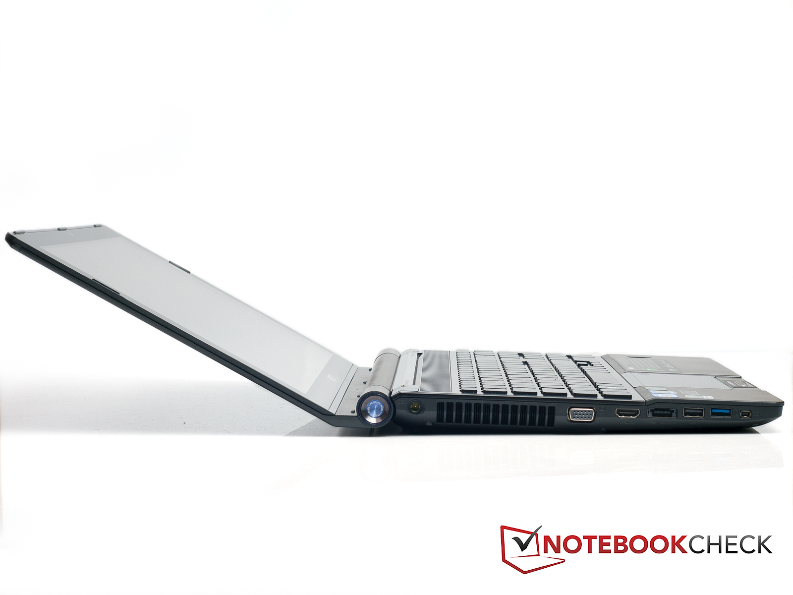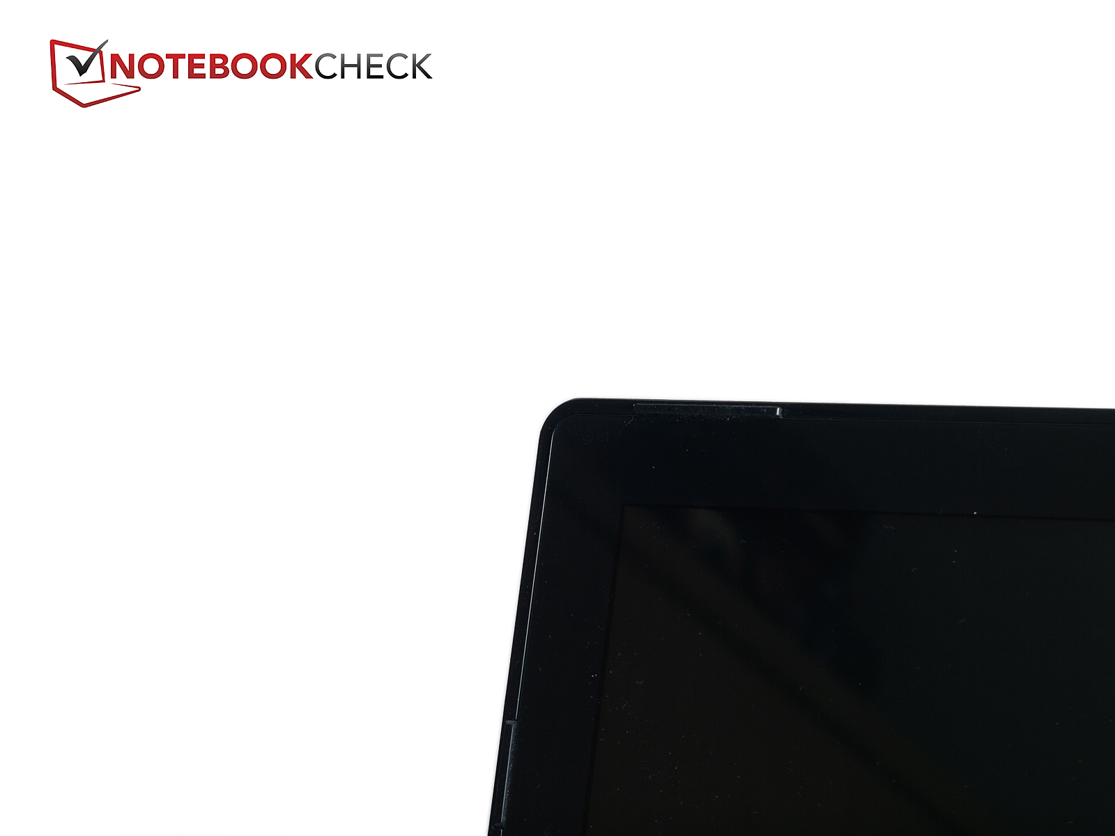 Das Display hingegen kann dank seiner guten Verwindungssteifheit wieder punkten. Nur der Displaydeckel lässt sich, wie bei vielen anderen Notebooks, leicht eindrücken. Bildfehler treten dabei keine auf. Die Scharniere des Displays können ein Nachwippen des Displays nicht komplett verhindern, halten das Display die meiste Zeit aber sicher an Ort und Stelle. Erfreulicherweise sind die Scharniere so abgestimmt worden, dass man den Deckel bequem mit einer Hand öffnen kann, ohne dass das Notebook dabei abhebt.