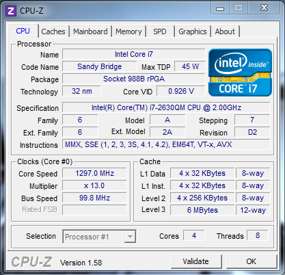 Mit diesem großen Leistungsspektrum ist der Prozessor allen Aufgaben gewachsen und kann in vielen Bereichen eingesetzt werden. Im Vergleich zur vorherigen Generation der Core Prozessoren, liegt der 2630QM sogar leicht über dem damaligen Topmodell, dem i7-940XM. All diese Leistung muss natürlich ausreichend gekühlt und mit Energie versorgt werden, von daher wird der Prozessor vor allem für große Notebooks empfohlen. Dies spiegelt sich auch beim TDP wieder, der mit 45 Watt 10 Watt über den Doppelkernprozessoren der Sandy Bridge Notebooks liegt. Natürlich ist auch in den Vierkernprozessoren direkt die Intel HD Graphics 3000 Grafikkarte mit integriert.