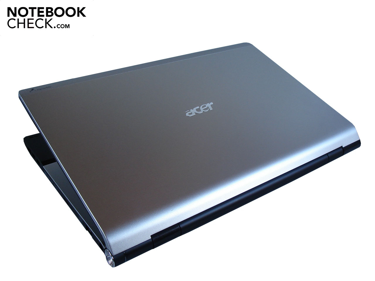 Bezüglich der Stabilität muss sich das Chassis keine Kritik gefallen lassen, erst bei stärkerem Druck konnten wir ein geringfügiges Nachgeben provozieren. Die Scharniere überzeugten uns dagegen weniger, trotz eines Gewichtes von knapp vier Kilogramm schwingt die Baseunit beim Öffnungsvorgang mit. „Transportabel“ ist ein Attribut, das auf das Aspire 8950G in keiner Weise zutrifft. Mit einer Größe von 440 x 295 x 41 Millimetern ist das Notebook primär für den stationären Einsatz ausgelegt.
