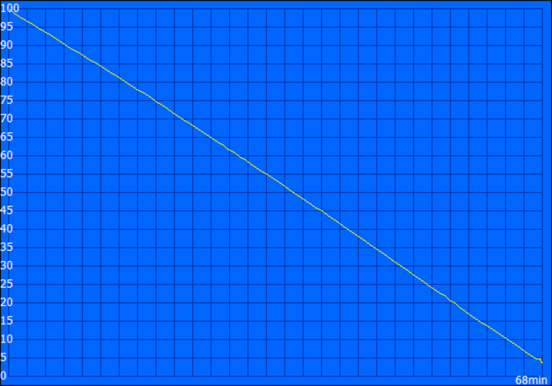Sofern der Nutzer nur im Internet surft (W-LAN an) und die Helligkeit auf einer erträglichen Stufe eingestellt ist, schafft der 18-Zoller 222 Minuten.