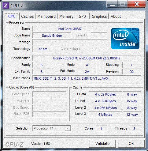 Grund für die schlechte Leistung im Vergleich zu Systemen mit gleichem Prozessor ist eine Turbo-Boost Problematik. Nur kurzzeitig kommt der Intel-Prozessor im Multi-Test (64bit) von Cinebench R10 auf 2,6 Ghz. Teilweise fällt der Takt wie im Screenshot zu sehen auf 1,7 Ghz.