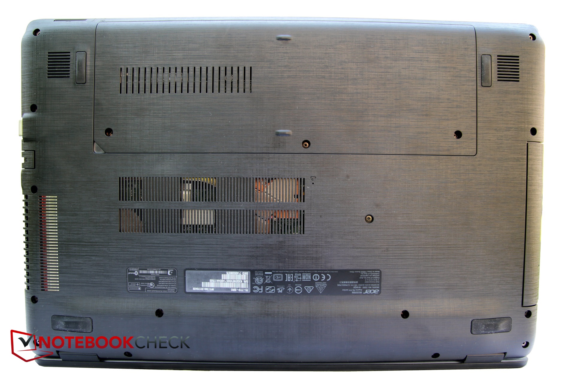 Auch die Unterseite des Notebooks ist aus Kunststoff, dieser ist jedoch stark angeraut und wirkt sehr stabil. Außerdem ist das angeraute Plastik sehr griffig und zieht, entgegen dem Alu, keine Fingerabdrücke an. Der Akku ist, wie mittlerweile leider üblich, nicht wechselbar. Immerhin verfügt der F5-771G über eine Wartungsklappe, dazu später noch mehr.