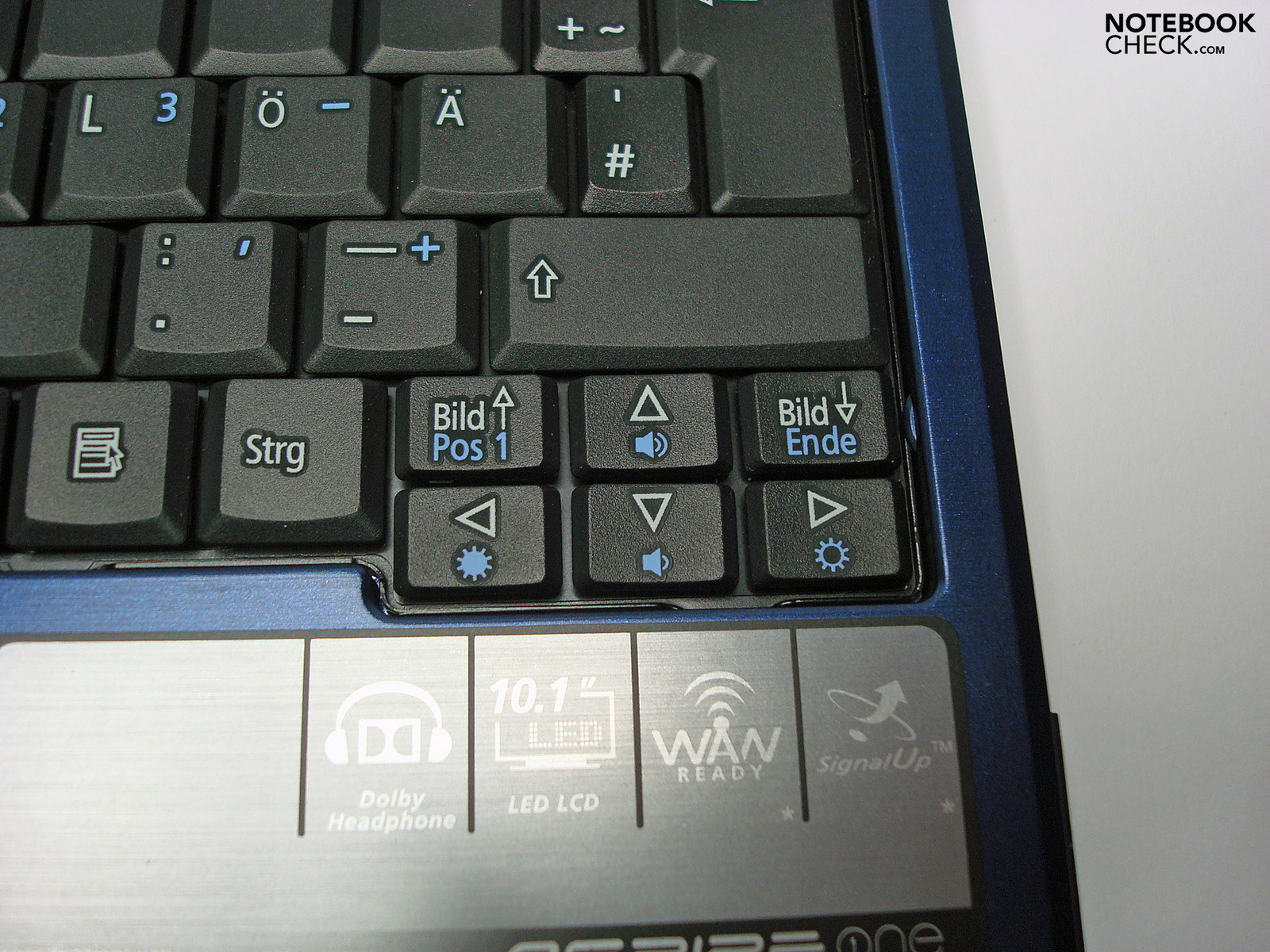 Per FN-Kombination sind Zusatzfunktionen wie Displayhelligkeit und Lautstärke schnell regelbar und entsprechen damit dem üblichen Standard. Erfreulich ist auch der frontseitig angebrachte W-LAN Schalter der das Ein-und Ausschalten des Funkmoduls unkompliziert ermöglicht.