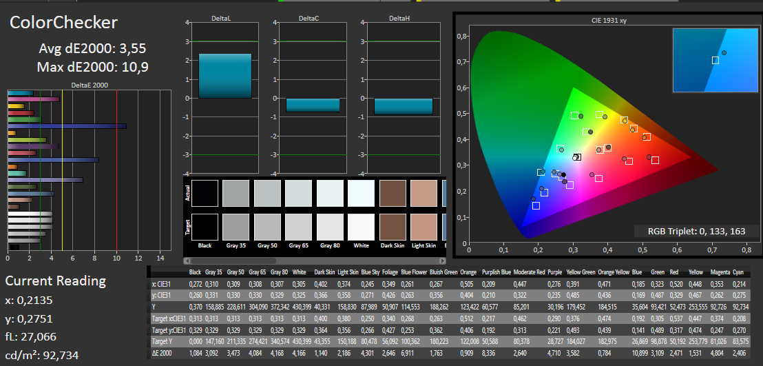 ΔE ColorChecker Calman: 3.55 | ∀{0.5-29.43 Ø4.78}