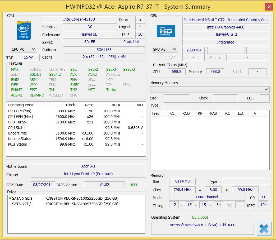 Wo hochwertige Convertibles mit abnehmbarem Display-Teil meist schlechter abschneiden, kann das Acer dagegen viele Punkte gut machen. Aufgrund der Tatsache, dass der Prozessor und die restlichen Komponenten nicht hinter dem Display, sondern in der Base-Unit verbaut werden konnten, muss nicht auf äußerst sparsame Prozessoren zurückgegriffen werden. Dem Preis entsprechend setzt Acer mit dem Core i7-4510U gleich auf ein Top-Modell der ULV-Baureihe von Intel. Sony genehmigt dem 13A multi-flip hier lediglich einen i5, wobei Lenovo auf Intels brandneue Core-M Plattform vertraut. Für die Grafikausgabe im Acer zeigt sich die im Prozessor integrierte Intel HD Graphics 4400 mit 20 Execution Units (EUs) verantwortlich. Zusammen mit den satten 8 GB an Arbeitsspeicher und den zwei im RAID-0 verbundenen 256 GB SSDs, sollte sich ein performantes Gerät ergeben. Und ja: das Convertible arbeitet im Windows Betrieb stets flüssig und leise, auch rechenintensivere Aufgaben sind kein Problem.