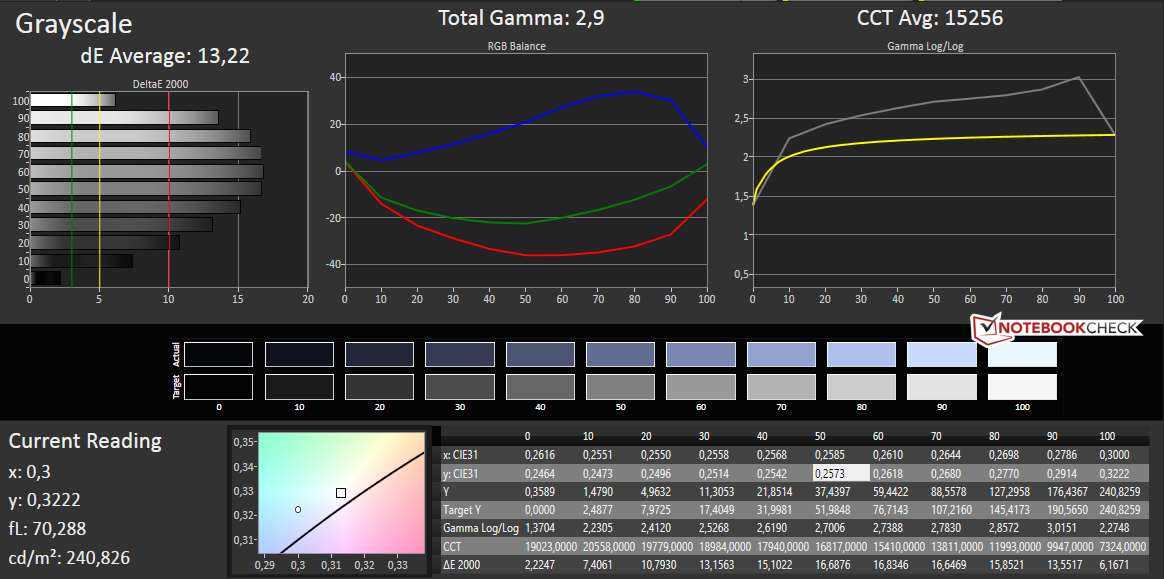 ΔE Greyscale Calman: 13.22 | ∀{0.09-98 Ø5}