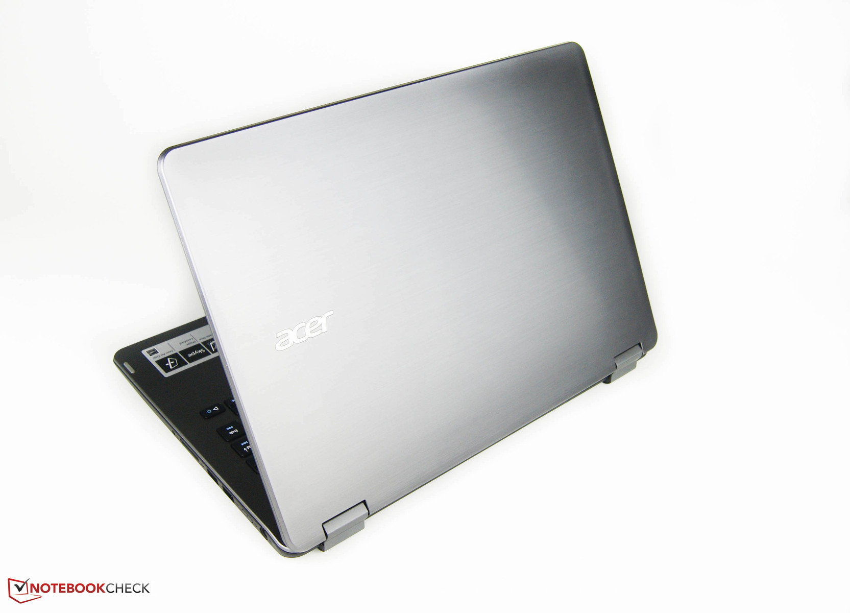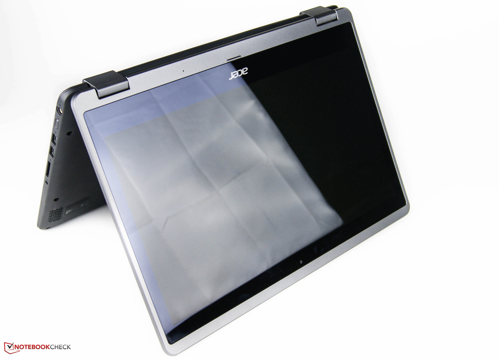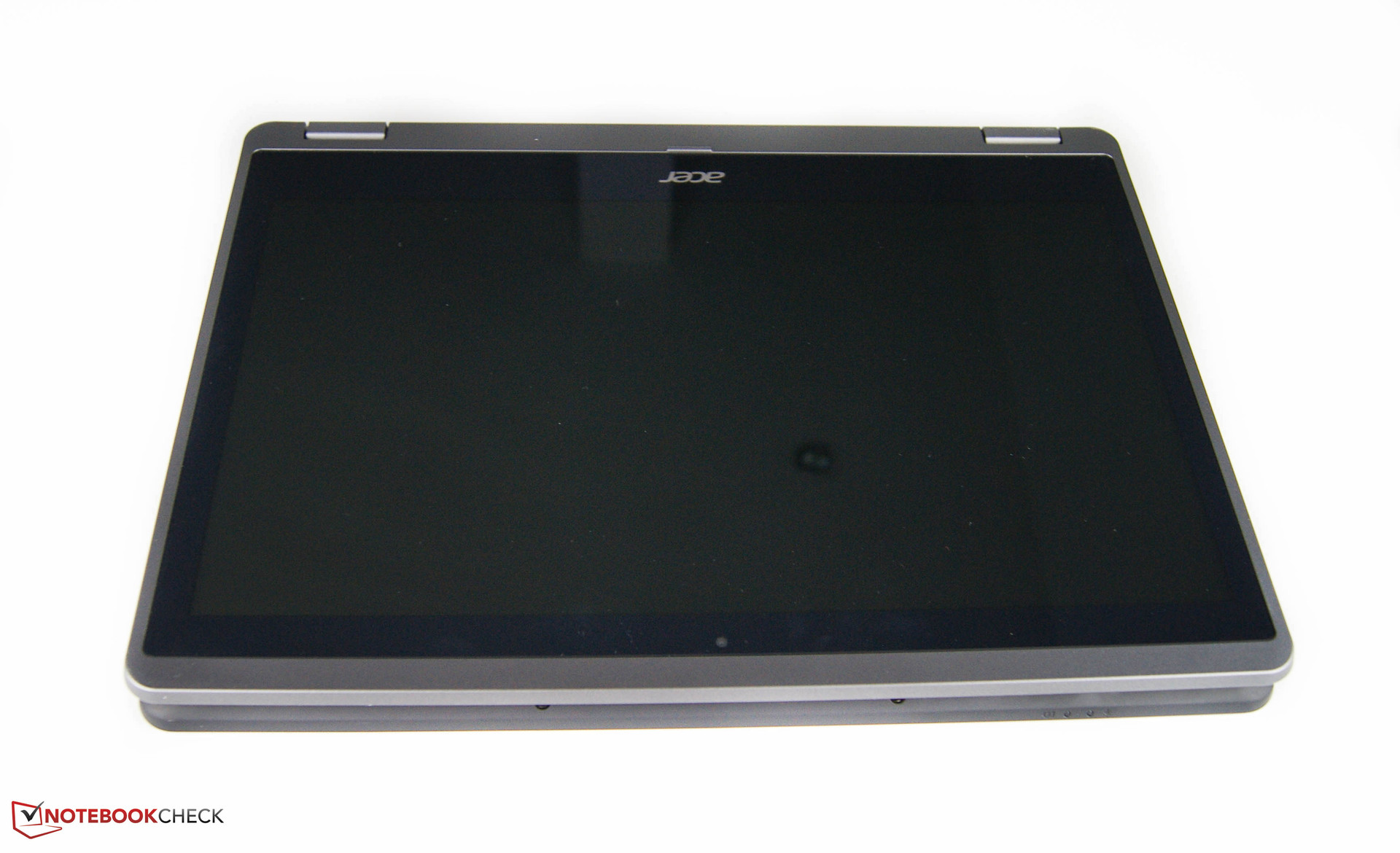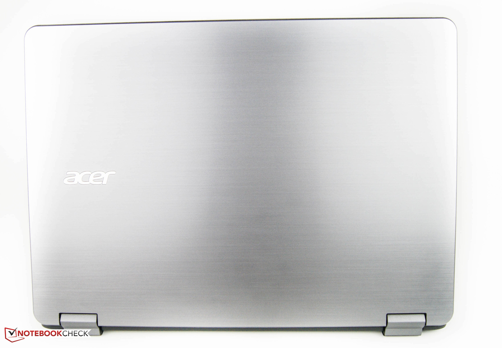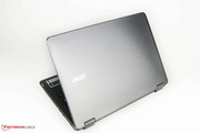 Der Aluminium-Look des Kunststoffgehäuses lässt das Acer edel aussehen. Die Verarbeitung ist insgesamt zufriedenstellend. Nur am Displayrücken sind einige schärferen Kanten zu entdecken. Die Einheit des Displaydeckels steht nahe der Scharniere etwas ab. Umliegend lagert sich auf Grund eines zu großen Spaltes schnell Staub ab. Das Gewicht des Acers wird gleichmäßig verteilt, wodurch es sich sehr kompakt und robust anfühlt. Die beiden 360°-Scharniere stehen vom Gehäuse ab und sind in unserem Fall sehr fest, wodurch der Bildschirm kaum nachwippt. Die Displayeinheit misst eine Dicke von 0,9 cm, wie bei den meisten Convertibles und Ultrabooks ist der Rahmen des Displaypanels sehr breit. Die Tastatur wird leicht abgesenkt, damit das Display des R14 im Tabletmodus nicht direkt darauf aufliegt. Auf der Rückseite des Testgerätes finden wir leider keine Wartungsklappen, weshalb zu Reparaturzwecken die komplette Baseunit geöffnet werden muss. Selbst der Akku ist nicht ohne Weiteres austauschbar.