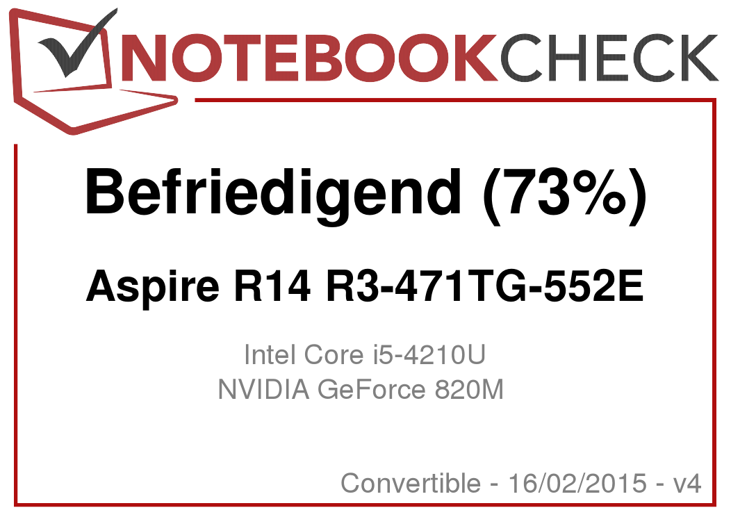 Insgesamt bleibt ein durchwachsener Gesamteindruck. Die Pluspunkte des Aspire R14 müssen schon sehr genau auf die individuellen Bedürfnisse eines Users passen, um einen Kauf zu rechtfertigen. Allen voran erachten wir das schwache Display als Hauptgrund, sich auch bei den Konkurrenten genauer umzusehen.