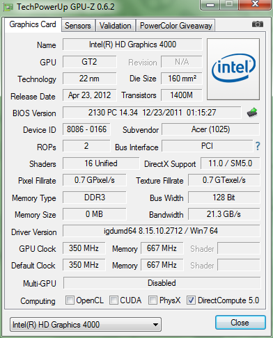 Zu den bereits bekannten technischen Daten der HD Graphics 4000 wollen wir an dieser Stelle nicht allzu viele Worte verlieren: 16 sogenannte Execution Units, getaktet mit 350 MHz (Turbo bis 1150 MHz), sorgen für eine Performance auf dem Niveau von dedizierten Einstiegsmodellen. DirectX 11 unterstützt die HD 4000 ebenso wie die Beschleunigung der gängigsten Videocodecs, zudem steht mit Quick Sync ein leistungsstarker Hardware-Encoder zur Verfügung.