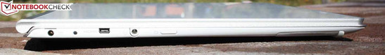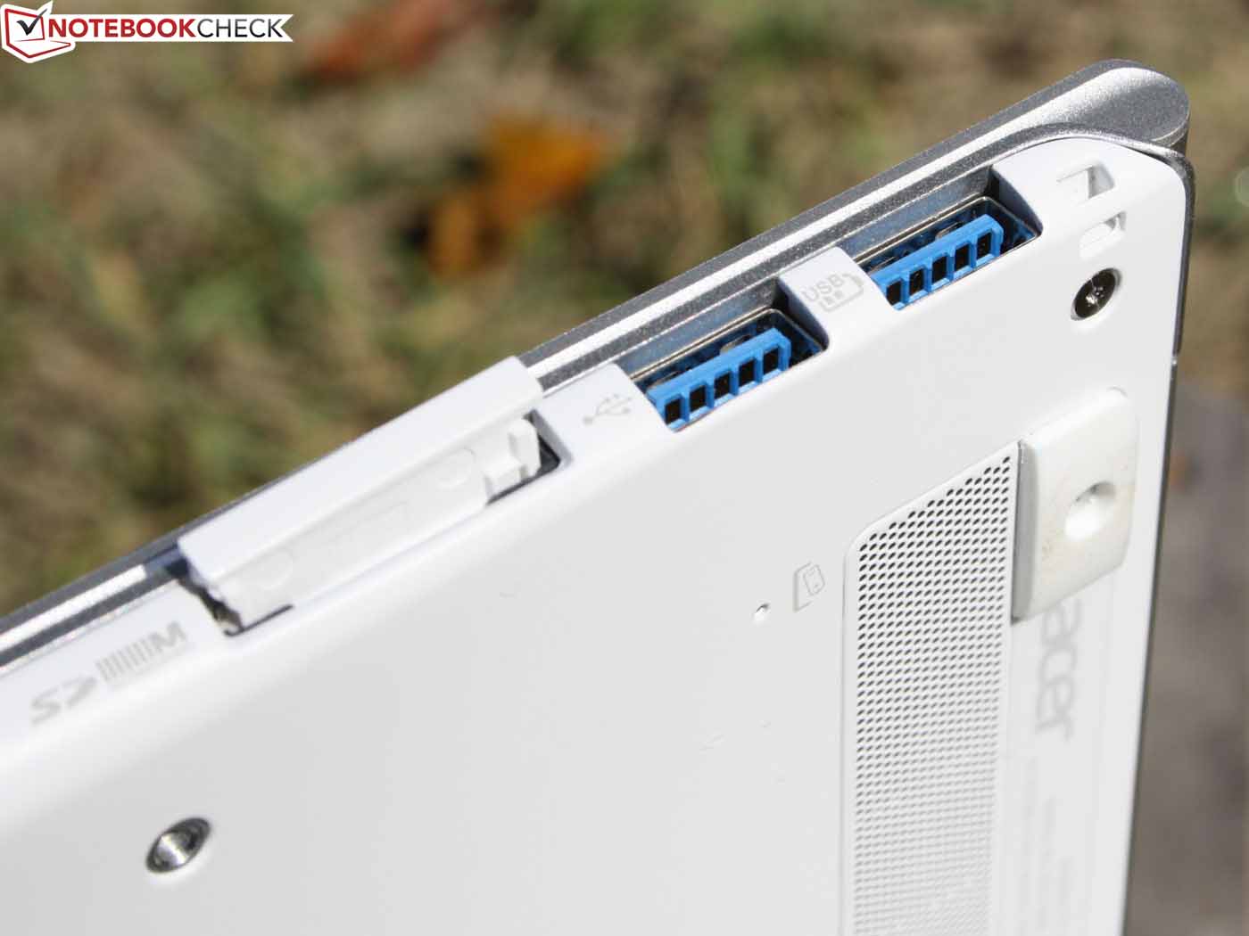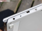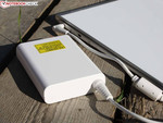 Im Leerlauf hält das S7 6:39 Stunden durch. Die Idle-Laufzeit ist allerdings praxisfern, sie gilt nur für minimierte Luminanz, deaktivierte Funkmodule und CPU-Leerlauf. Der WLAN-Test zeigt die Realität besser: Hier steht die Helligkeit bei zirka 150 cd/m² und ein Skript ruft alle 40 Sekunden Websites auf (teilweise Video-Inhalte). Damit sich Käufer hier behelfen können, wird Acer einen Zweit-Akku zum Verschrauben an der Unterseite anbieten (ebenfalls 4.680 mAh). Die Spannung wird per Kabelstecker (sitzt links) an das Gerät geleitet.