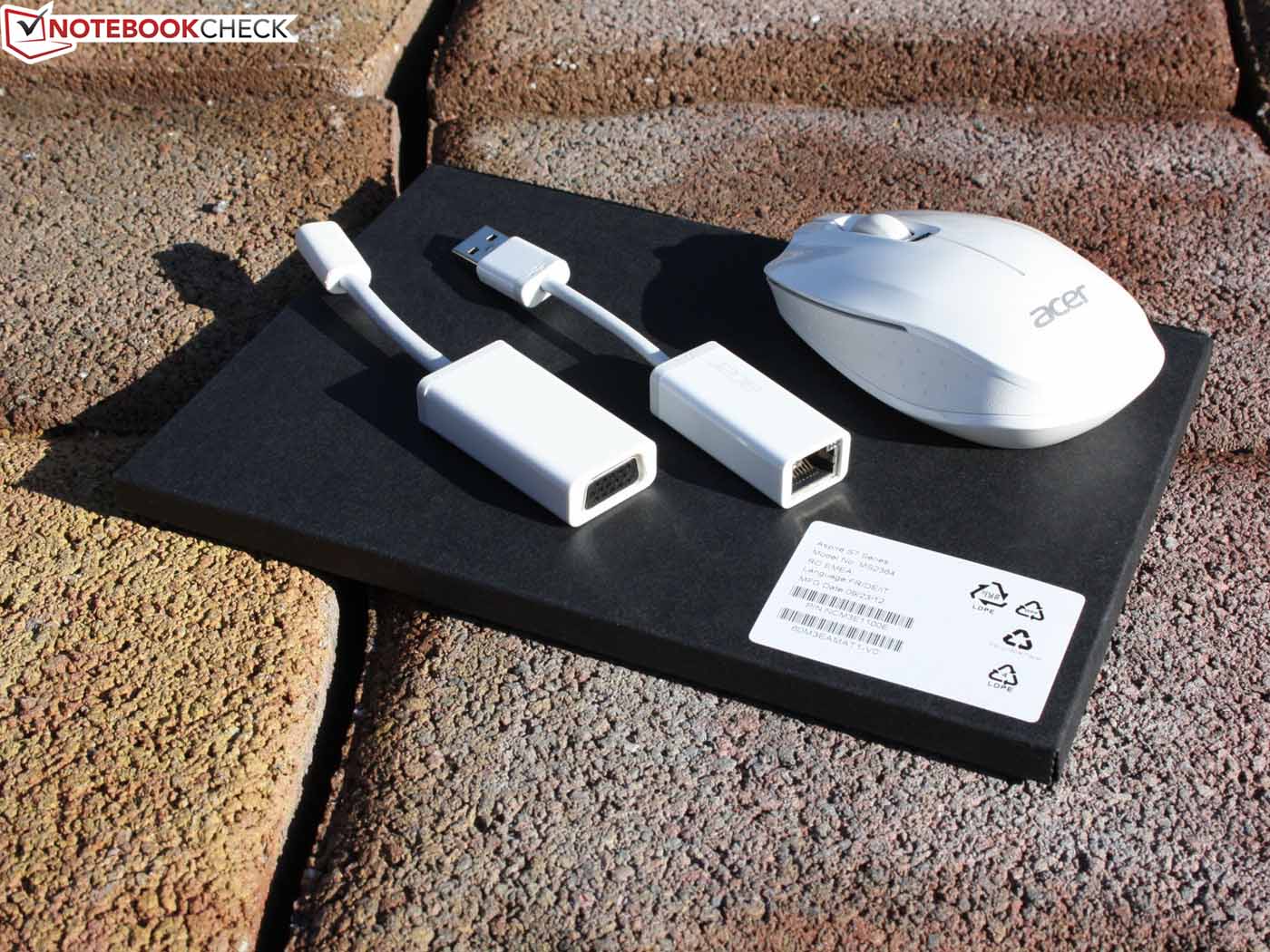 Viel Platz für Anschlüsse hat das S7 nicht, VGA und Ethernet sind schon wegen ihrer Bauhöhe gestrichen worden. Verblieben sind zwei USB-3.0-Ports sowie Micro-HDMI und Kartenleser. Damit Kunden nach dem Kauf nicht enttäuscht vor ihrem externen TFT-sitzen, legt Acer einen Micro-HDMI-auf-VGA-Adapter bei. Ethernet-Fans bekommen bei dieser Gelegenheit einen USB-auf-RJ45-Dongle spendiert. Dieser unterstützt aber nur Fast Ethernet.