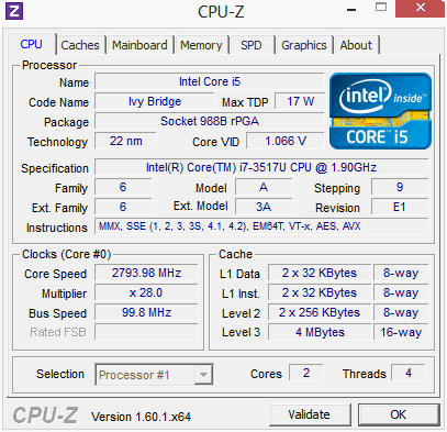 Der Intel Core i7 3517U (2 x 1,9 GHz) ist ein Ultra-Low-Voltage-Prozessor mit einem TDP (thermische Verlustleistung) von 17 Watt. Laut Acer wird es auch ein S7-Modell mit Core i5 3317U geben. Die Taktung per Turbo-Boost 2.0 kann bis zu 3,0 GHz betragen (Single-Core-Last). Hierfür muss jedoch die Thermik mitspielen (Leistung sinkt, wenn zu warm), was wir im Abschnitt "Prozessor" klären.