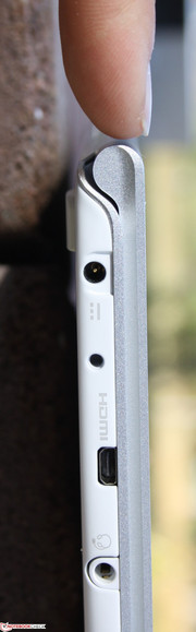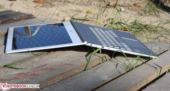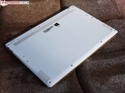 Acer gab sich redlich Mühe, das Gehäuse trotz seiner flachen Beschaffenheit (Höhe maximal 12 mm plus 1,5 mm für Standfüße) stabil zu machen. Wir sind angenehm überrascht: Die Base-Unit ist nahezu steif wie ein Brett, weder längs noch diagonal können wir mit normaler Kraftanstrengung das Chassis verbiegen.