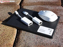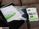 In der hochwertigen Verpackung liegt standardmäßig ein stabiles Slim-Case, das für die 12 Millimeter optimal ist. Danach fallen uns die zwei benannten Adapter in die Hände (Ethernet, VGA). Wer Standard-HDMI anschließen will, der braucht einen weiteren Adapter. Datenträger mit Windows 8 Pro (64 Bit) oder Treiber liegen nicht bei. Der Nutzer wird durch den Recovery Manager vehement dazu aufgefordert, ein Recovery Backup zu brennen.
