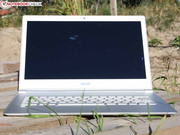 Unter den Schlankheitsambitionen muss die Performance nicht leiden. Acer hat mit den zwei Lüftern (TwinAir) eine gute Idee umgesetzt. Der i7 leistet eine standesgemäße Arbeit. Leiden muss aber die Mobilität. Zum einen schaffen die 4.680 mAh nur 3:29 Stunden (WLAN-Test), zum anderen dimmt die Helligkeit im Akkubetrieb auf 165 cd/m² herunter (Netz 361 cd/m²). Das Panel ist dann für draußen zu dunkel und die Reflexionen des Glare Type stören umso deutlicher. Für diesen Nachteil haben wir das Display-Rating um 5 Zähler gekürzt. Sofern Acer mit einem BIOS-Update dieses Manko behebt, werden wir darüber informieren.