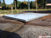 Der Deckel besteht aus einem Aluminiumrahmen, in den außen Gorilla Glas II als versteifende Fläche eingesetzt wurde. Dieses sorgt nicht nur für Schmierfinger, sondern auch für eine hohe Festigkeit. Ein Verwinden des Deckels gelingt nur im begrenzten Maße.