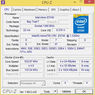 Beim Intel Z3745D-Prozessor handelt es sich keinesfalls um eine High-End-CPU von Intel, allerdings haben sich sowohl die CPU- als auch die GPU-Leistung im Vergleich zu der vorherigen Prozessorgeneration für Windows-Tablets deutlich gesteigert. Intel hat nun ebenfalls hardwarebasierte Videodecoder und -encoder integriert, um die Leistung bei der Wiedergabe und der Bearbeitung von Videos zu verbessern.