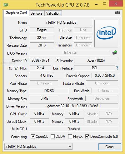 Bluetooth 4.0 wird unterstützt und das Tablet verfügt über eine Reihe von Sensoren, inklusive des normalen Rotationssensors und des Umgebungslichtsensors. Zudem gibt es eine Invensense "Sensor-Kollektion", bei der es sich vermutlich um das Gyroskop und den Beschleunigungssensor handelt, die wir im späteren Verlauf des Tests für die Spiele verwendet haben. Leider stehen im Gegensatz zum letztjährigen W510 weder GPS noch NFC zur Verfügung, und auch 3G gibt es beim Acer Aspire Switch 10 nicht. Nach unserem Kenntnisstand gibt es keine Version mit einem integrierten 3G/4G-Modem.