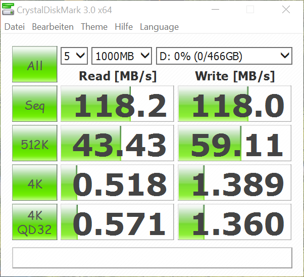 Die LiteOn-SSD (L8H-128V2G) und die Western-Digital-HDD (WD5000LPVX-22V0TT0) ergeben ein lukratives Gespann aus Geschwindigkeit und Speicherplatz. 552 GB sind bei Auslieferung in etwa verfügbar, auf beiden Speichermedien in Summe. Die HDD kann ausgetauscht werden, sie befindet sich ja im Dock, was unten nach dem Lösen einiger Schrauben geöffnet werden kann. Die WD5000LPVX (WD Blue Mobile) mit 1,7 mm Bauhöhe ist im Dock per SATA 6 GB/s am USB-3.0-Controller angebunden, wodurch zügige Lese-/Schreib-Raten zustande kommen. 118 MB/s im Read/Write sind überaus zackig für ein einfaches 5.400-RPM-Modell. Das war im Switch 11 Pro noch ganz anders: Hier lieferte die HDD im gleichen Test gerade mal 33 MB/s. Folge: Dateien können ruckzuck zwischen den internen Speichern verschoben werden, und Programme laden von der HDD so zügig, wie wir es auch von Notebooks gewöhnt sind.