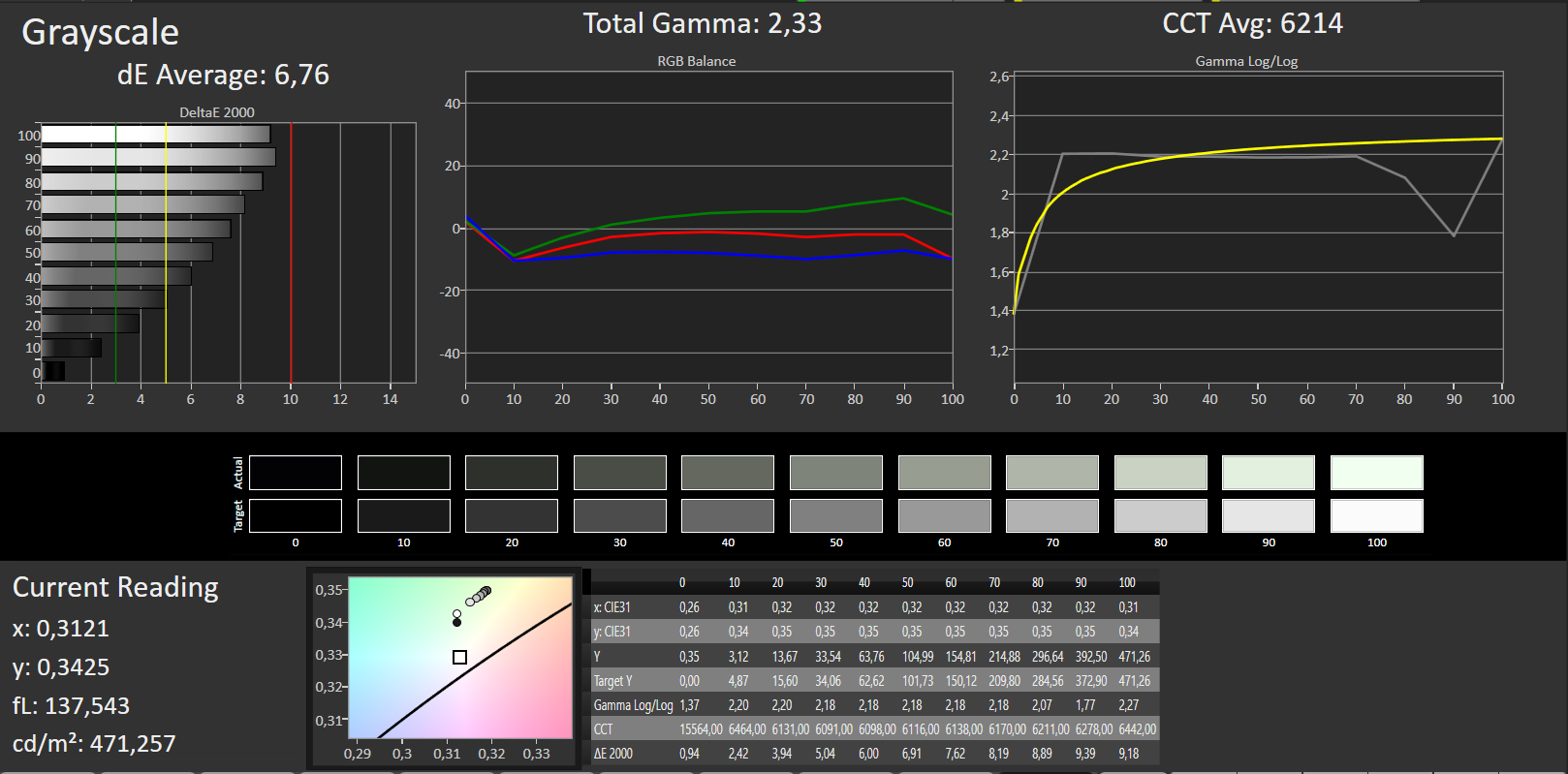 ΔE Greyscale Calman: 6.76 | ∀{0.09-98 Ø5}