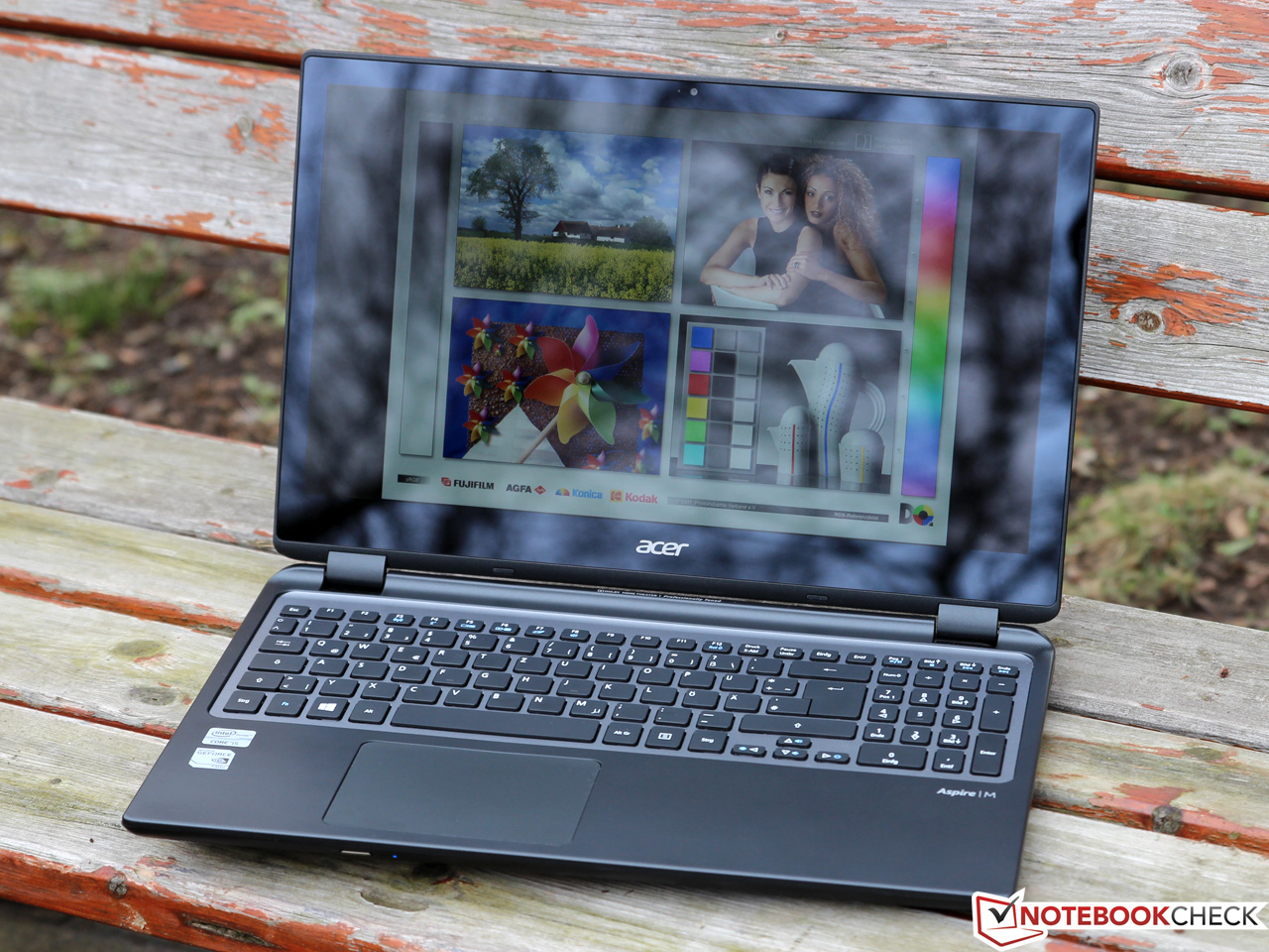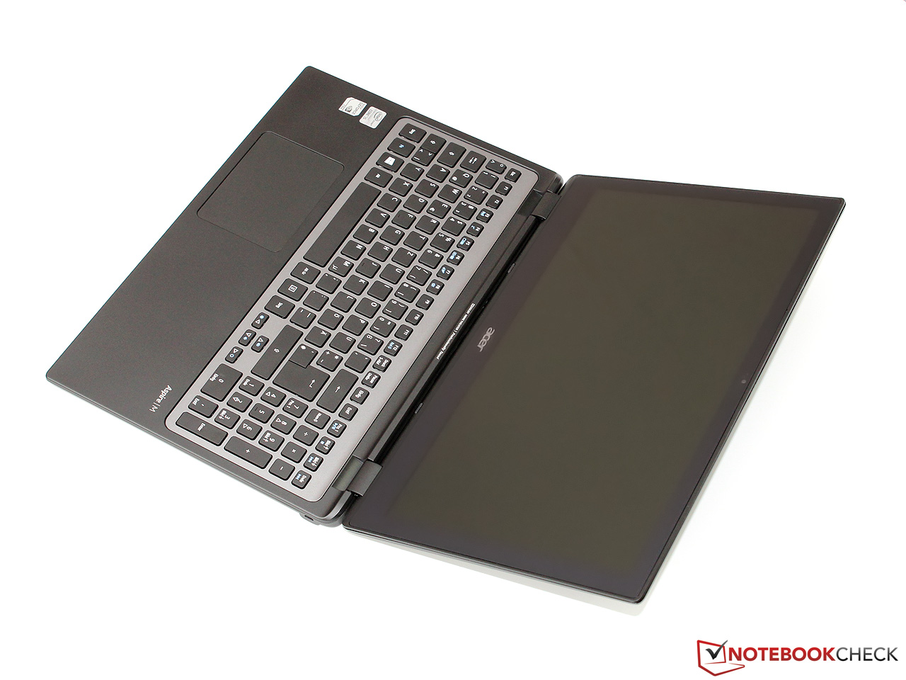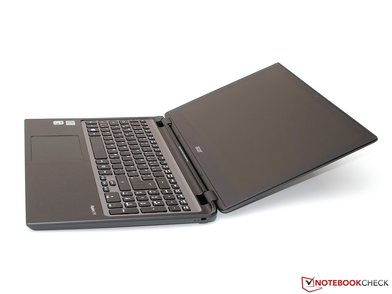 Während Acer bei der M5-Serie durchgängig auf massive Leichtmetalle setzt, muss unser Testkandidat überwiegend mit einfachem Kunststoff vorliebnehmen. Die Stabilität fällt demzufolge insbesondere an typischen Problemstellen, wie über dem DVD-Laufwerk, etwas schlechter aus, liegt aber insgesamt noch immer auf sehr hohem Niveau. Nur beim Displaydeckel kommt eine hochwertige Aluminium-Legierung zum Einsatz, die selbigem eine vorbildliche Verwindungssteifigkeit beschert. Ebenso können wir die straffen Scharniere loben, welche ihren Dienst präzise und mit minimalem Spiel verrichten.