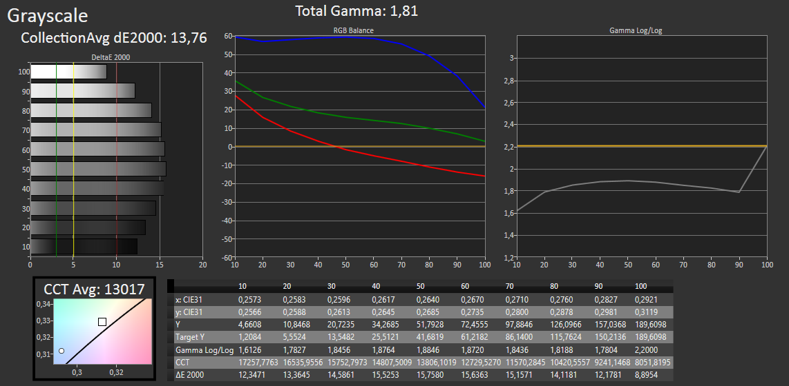 Kontrast: 495:1 (Schwarzwert: 0.42 cd/m²)
