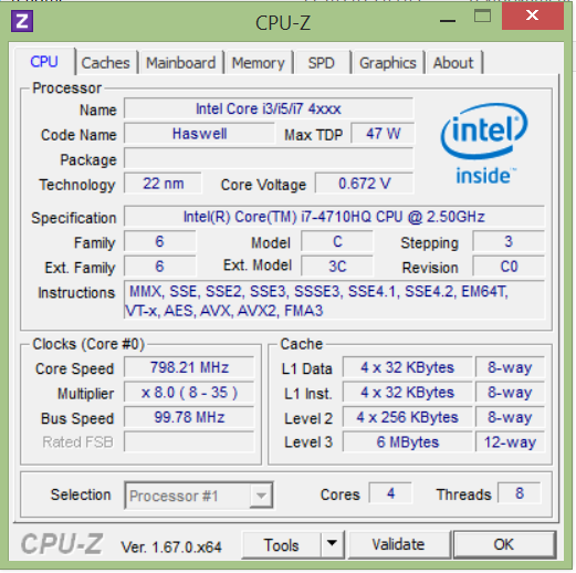 Trotz der recht schlanken Bauweise hat Acer der Black Edition einen herkömmlichen Mobilprozessor (kein ULV) spendiert, der eine TDP von 47 Watt besitzt. Der verbaute Core i7-4710HQ (Vierkernprozessor aus der Haswell Generation) arbeitet mit einem Basistakt von 2,5 GHz. Mittels Turbo Boost kann die Geschwindigkeit auf 3,3 GHz (vier Kerne), 3,4 GHz (zwei Kerne) bzw. 3,5 GHz (ein Kern) beschleunigt werden. Um zu überprüfen, ob die volle Rechenleistung abgerufen werden kann, lassen wir die CPU-Tests der Cinebench Benchmarks laufen. Im Netzbetrieb bearbeitet der Prozessor die Multi-Thread-Tests mit 3,3 GHz. Bei den Single-Thread-Tests werden immer wieder zwei Kerne auf 3,4 bzw. ein Kern auf 3,5 GHz beschleunigt. Somit steht die volle Leistung zur Verfügung. Werden die Tests im Akkubetrieb durchgeführt, arbeitet der Prozessor mit 2,9 GHz (Multi-Thread) bzw. 2,9 bis 3,4 GHz (Single-Thread).