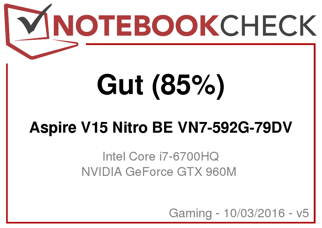 Nachdem wir im Jahre 2015 bereits die ULV-Variante des Aspire V15 Nitro (VN7-572G) getestet haben, liegt uns nun das Modell VN7-592G vor, das mit deutlich leistungsfähigerer Hardware bestückt ist. Äußerlich gleichen sich die beiden Rechner weitgehend. Unterschiede finden sich überwiegend im Inneren. So bringt unser aktuelles Testgerät einen Vierkernprozessor der Skylake-Generation und einen GeForce GTX 960M Grafikkern mit. Zu den Konkurrenten des Aspire zählen Modelle wie das Dell Inspiron 15 7559, das Asus ZenBook Pro UX501VW-DS71T, das MSI GE62. Generell können alle Rechner aus unserer Top 10 Liste für mobile Gaming-Notebooks dazu gezählt werden.