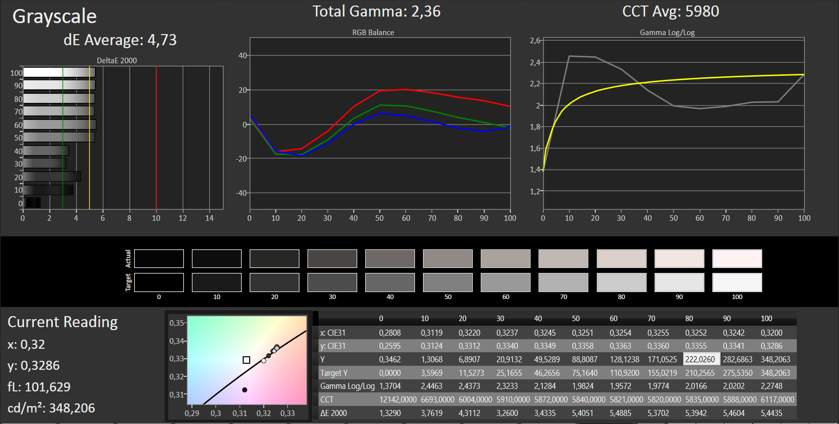 ΔE Greyscale Calman: 4.73 | ∀{0.09-98 Ø5}