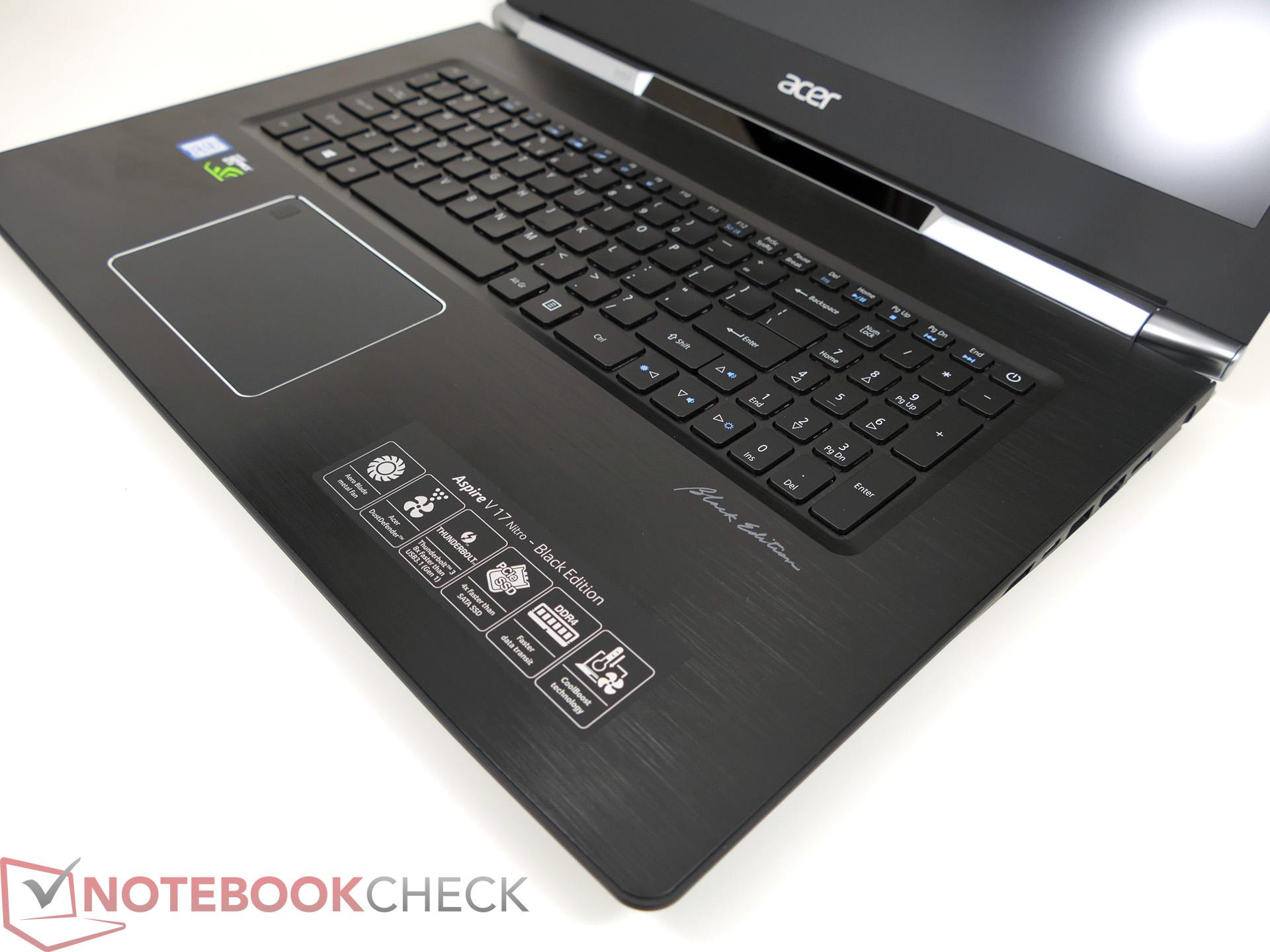 Da wir bereits mehrere Modelle des Aspire VN7-793G getestet haben, gehen wir nicht weiter auf das Gehäuse, die Ausstattung, die Eingabegeräte und die Lautsprecher ein. Entsprechende Informationen können dem Testbericht des Acer Aspire V17 Nitro BE VN7-793G-52XN entnommen werden.