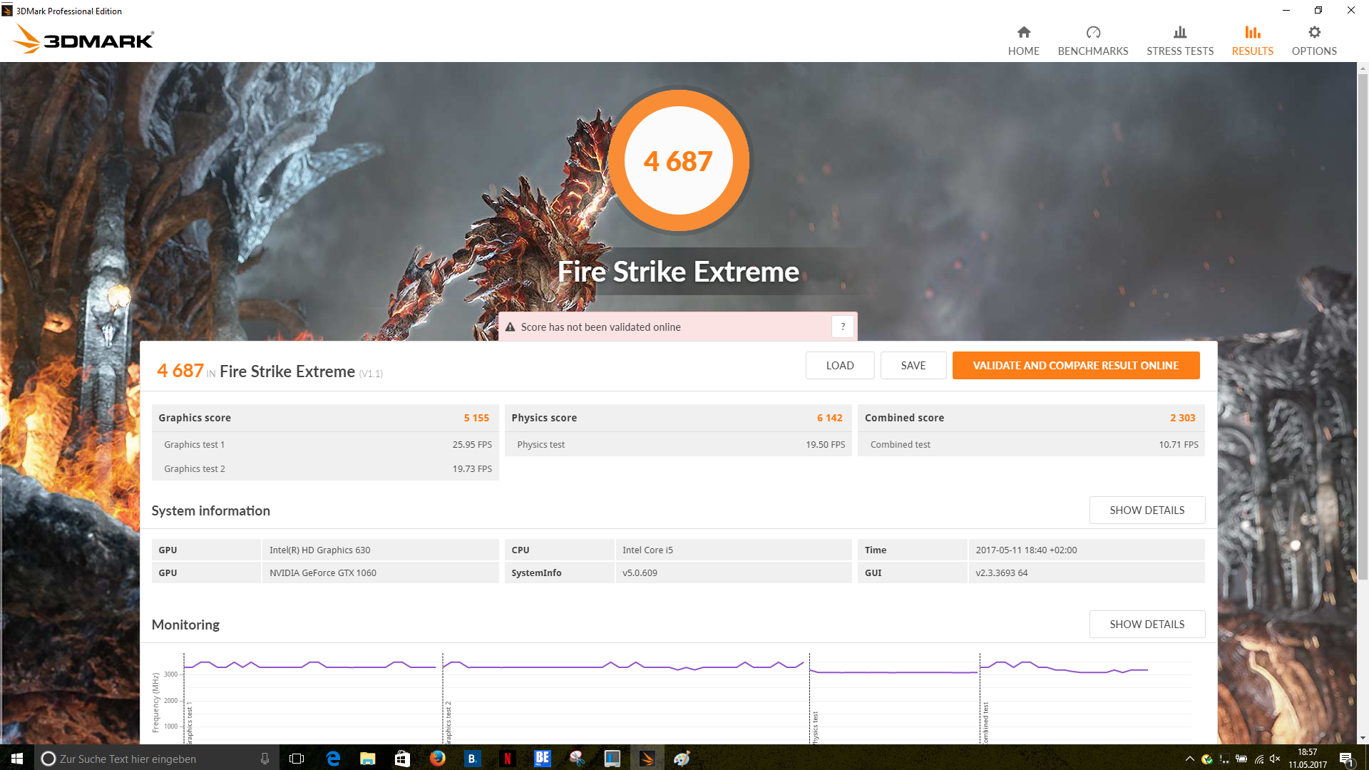 Unmittelbar im Anschluss des Lasttests haben wir den 3DMark 11 erneut laufen lassen, um zu dokumentieren, ob die anhaltende thermische Belastung negative Auswirkungen auf die Performance hat. Dies können wir nicht bestätigen, denn das Ergebnis deckt sich mit dem zuvor erreichten Werten.