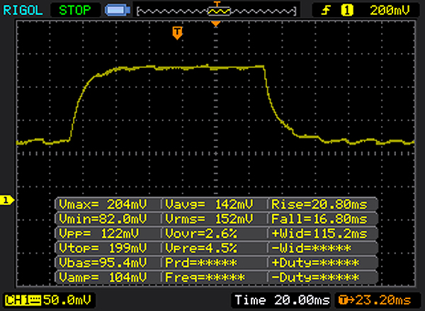 | 26 ms ... steigend ↗ und fallend ↘ kombiniert | ↗ 15 ms steigend | |