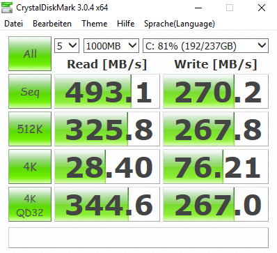 Der Kartenleser befindet sich auf der linken Seite und kann die gängigsten Formate verarbeiten. SD-Karten verschwinden leider nicht komplett in dem Lesegerät, sondern stehen leicht heraus. Aus diesem Grund sollten eingelegte Speicherkarten vor dem Transport entnommen werden. Der hier verbauten Kartenleser ist über die USB-2.0-Schnittstelle angebunden, weshalb die von uns ermittelten Messergebnisse knapp unter 25 MB/s liegen. Zum Einsatz kam unsere Referenzspeicherkarte, Toshiba Exceria Pro SDXC 64 GB UHS-II.