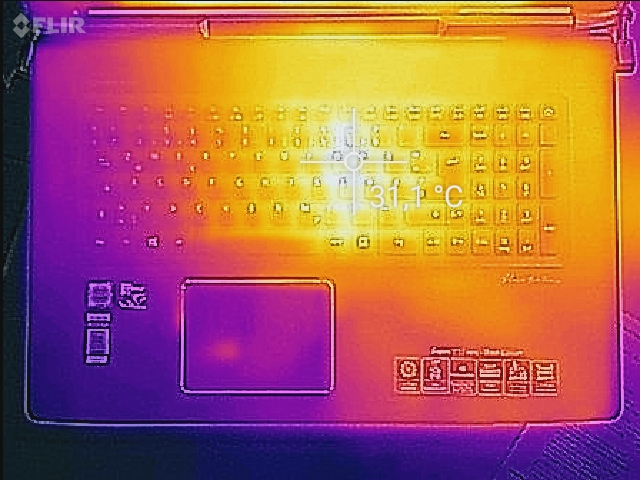 (+) Die Handballen und der Touchpad-Bereich sind mit gemessenen 28.7 °C kühler als die typische Hauttemperatur und fühlen sich dadurch kühl an.