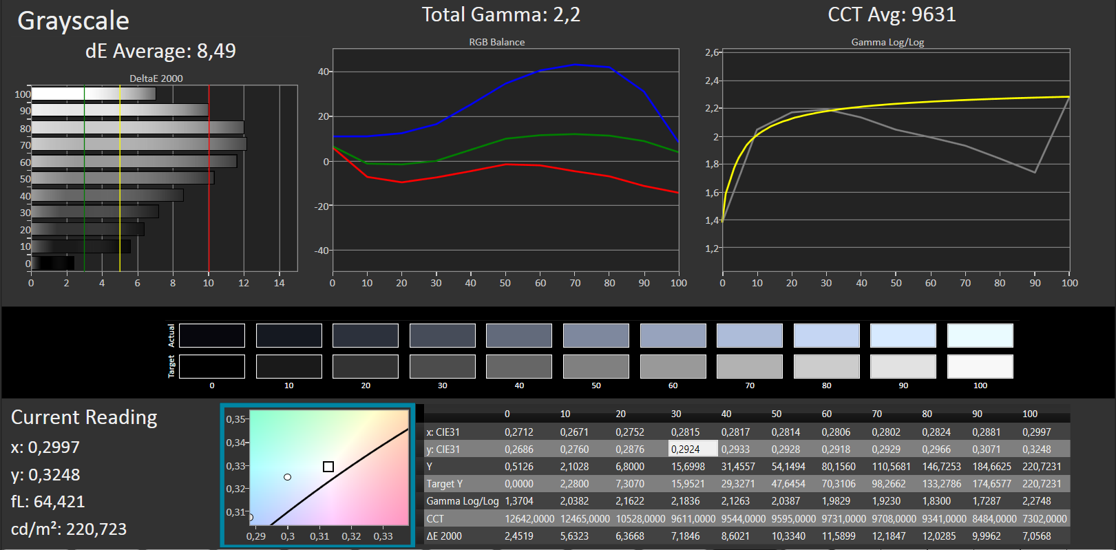 ΔE Greyscale Calman: 8.49 | ∀{0.09-98 Ø5}
