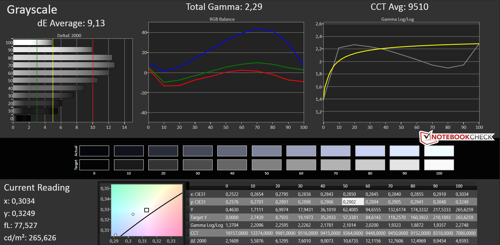 ΔE Greyscale Calman: 9.13 | ∀{0.09-98 Ø5}