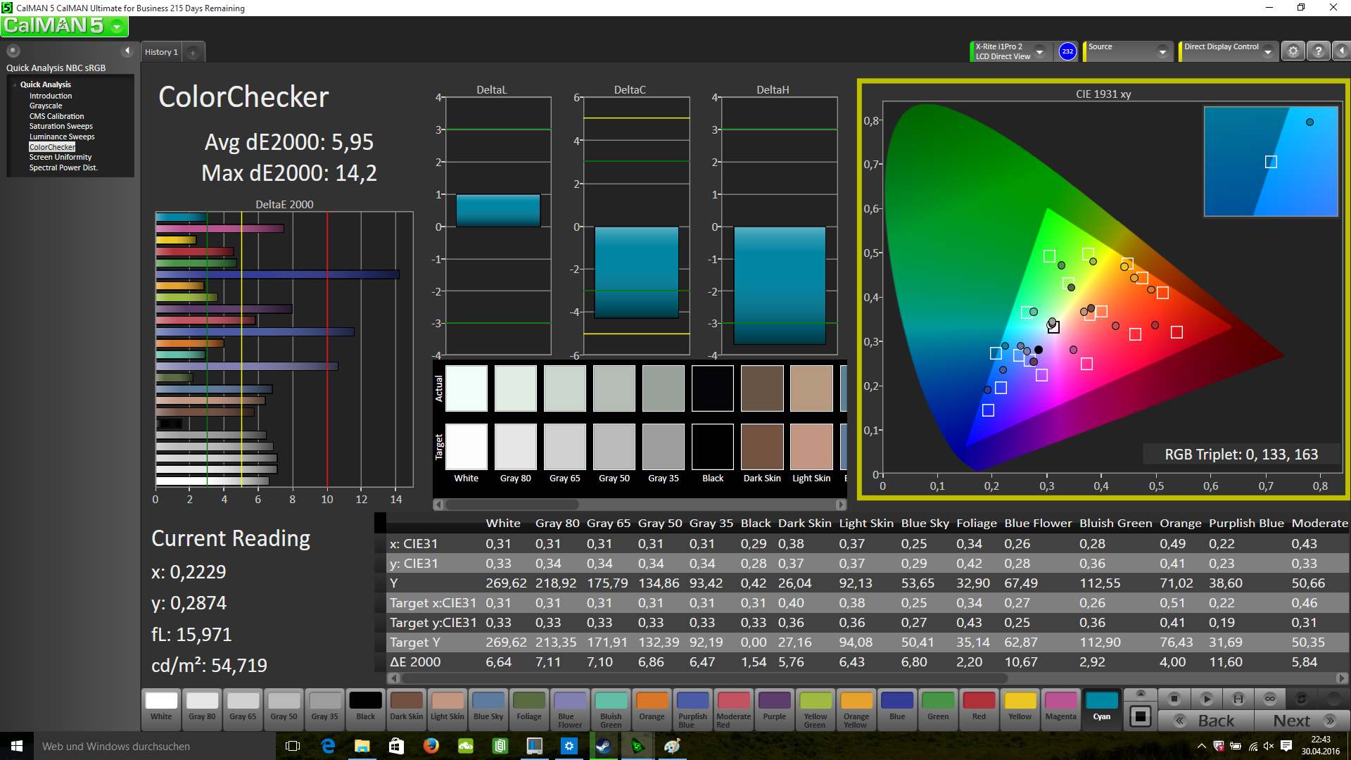 ΔE ColorChecker Calman: 5.95 | ∀{0.5-29.43 Ø4.78}